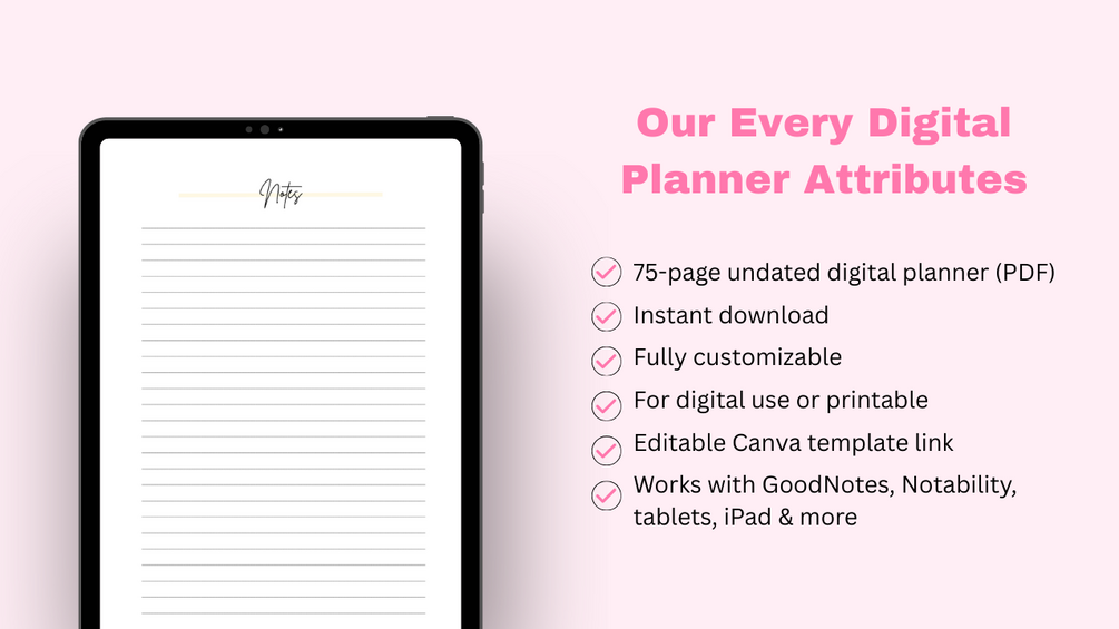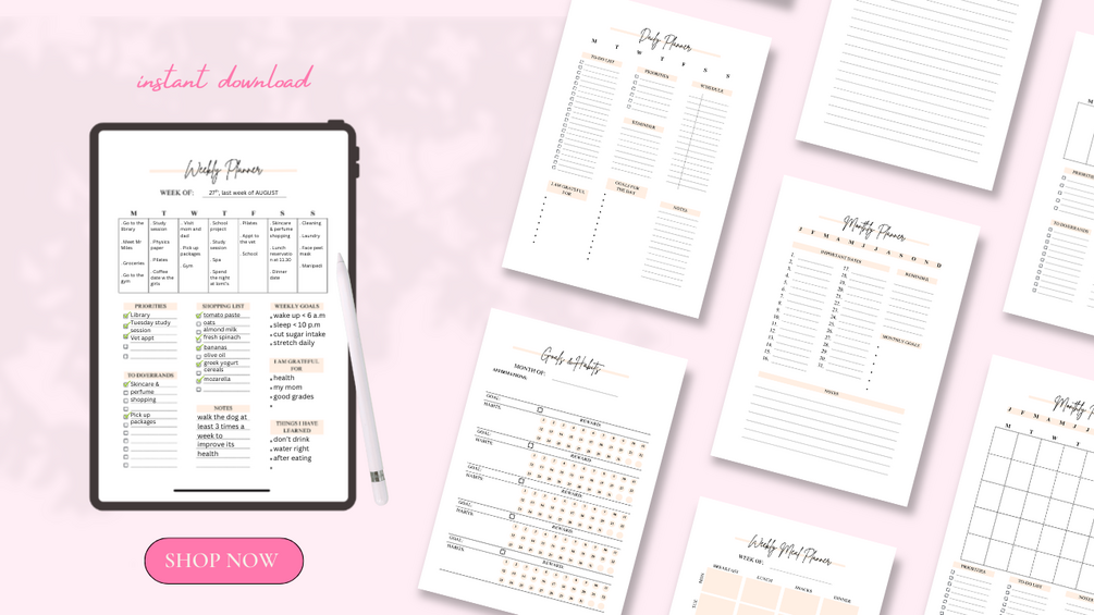 Stay stylishly organized with this minimalist pink digital planner. Perfect for anyone who wants planning to feel cute, productive, and motivating.