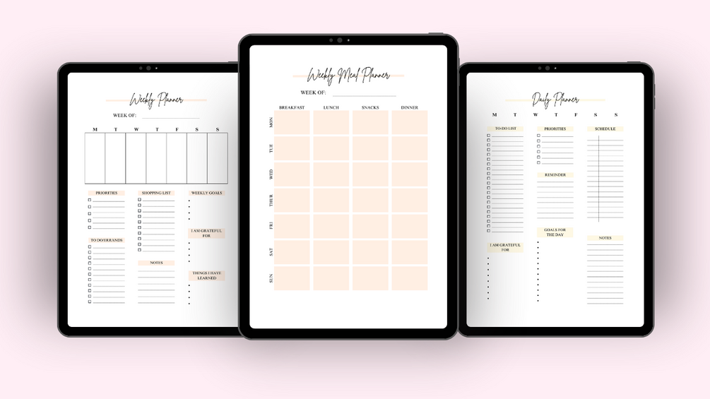 Soft & chic undated planner for iPad, tablet, or print